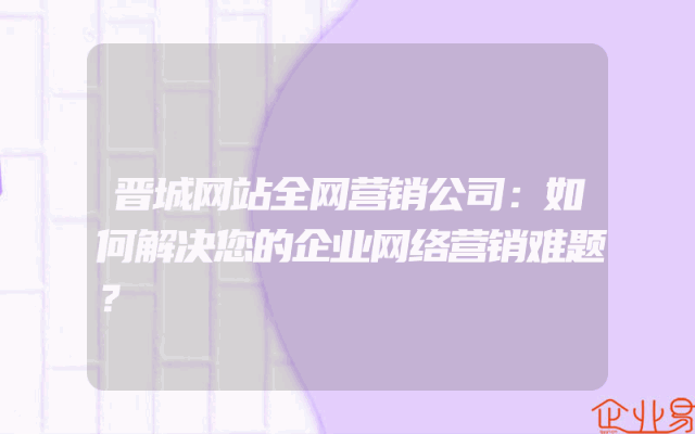 - 晋城网站全网营销公司:如何解决您的企业网络营销难题?
