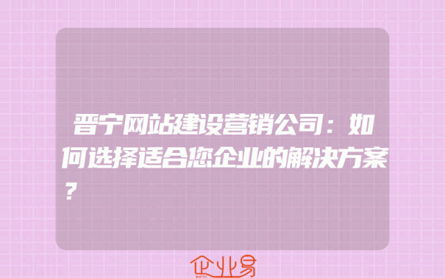 - 晋宁网站建设营销公司:如何选择适合您企业的解决方案?