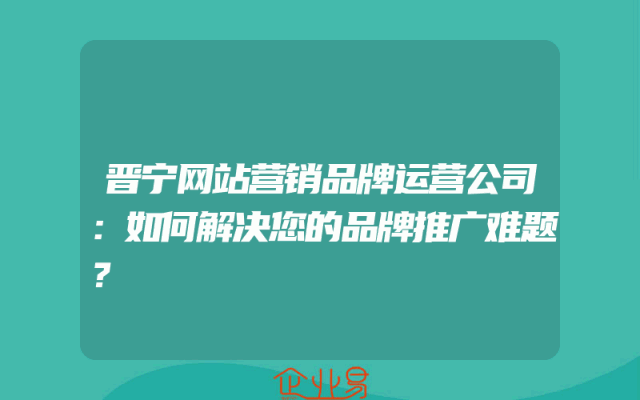 - 晋宁网站营销品牌运营公司:如何解决您的品牌推广难题?