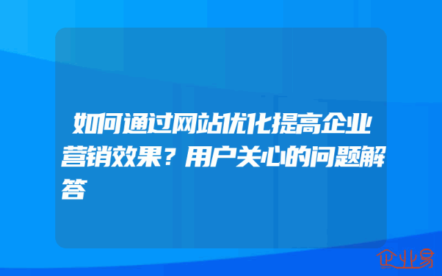 - 如何通过网站优化提高企业营销效果?用户关心的问题解答