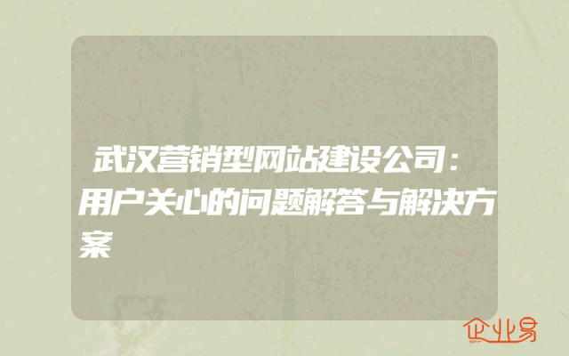 - 武汉营销型网站建设公司:用户关心的问题解答与解决方案
