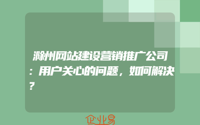 - 滁州网站建设营销推广公司:用户关心的问题,如何解决?