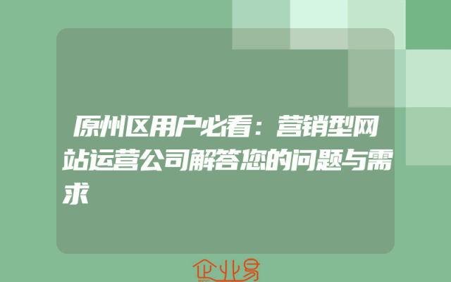 - 原州区用户必看:营销型网站运营公司解答您的问题与需求