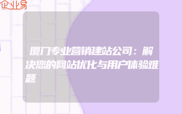 - 厦门专业营销建站公司:解决您的网站优化与用户体验难题