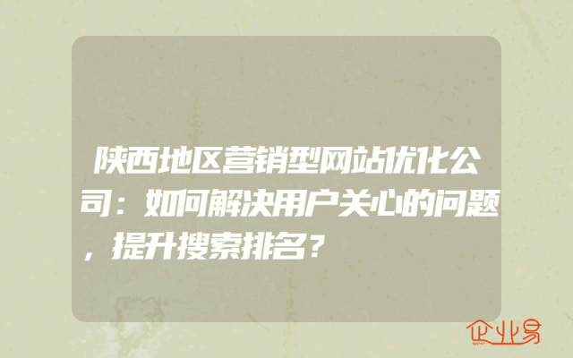 - 陕西地区营销型网站优化公司:如何解决用户关心的问题,提升搜索排名?