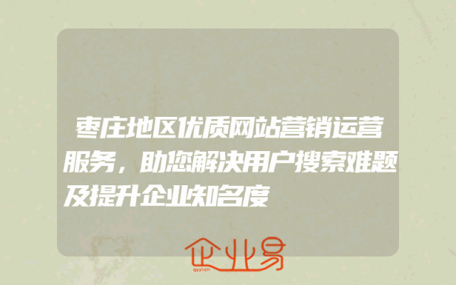 - 枣庄地区优质网站营销运营服务,助您解决用户搜索难题及提升企业知名度
