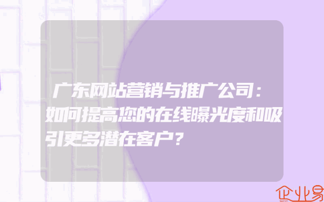 - 广东网站营销与推广公司:如何提高您的在线曝光度和吸引更多潜在客户?