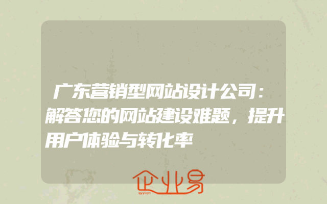 - 广东营销型网站设计公司:解答您的网站建设难题,提升用户体验与转化率