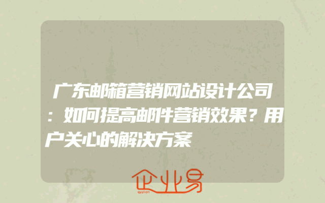 - 广东邮箱营销网站设计公司:如何提高邮件营销效果?用户关心的解决方案