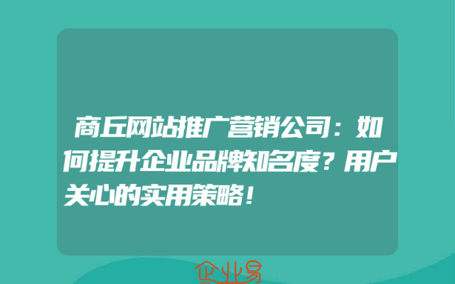 - 商丘网站推广营销公司:如何提升企业品牌知名度?用户关心的实用策略!