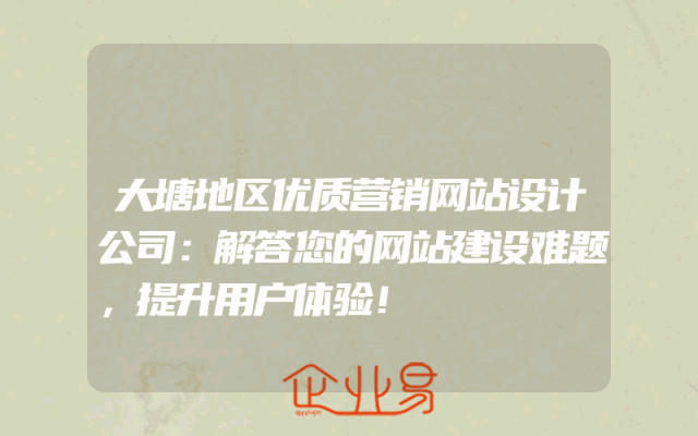 - 大塘地区优质营销网站设计公司:解答您的网站建设难题,提升用户体验!