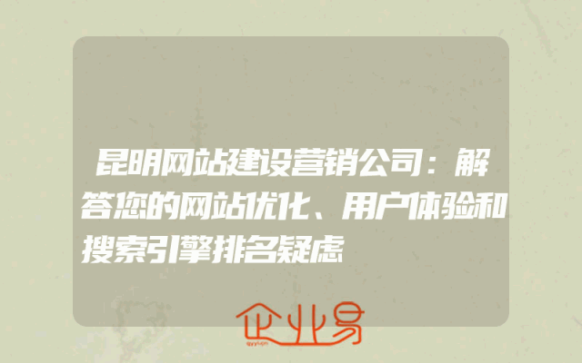 - 昆明网站建设营销公司:解答您的网站优化、用户体验和搜索引擎排名疑虑