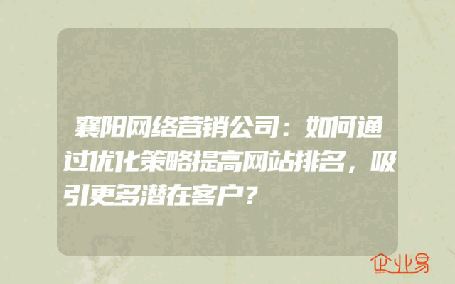 - 襄阳网络营销公司:如何通过优化策略提高网站排名,吸引更多潜在客户?
