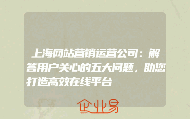 - 上海网站营销运营公司:解答用户关心的五大问题,助您打造高效在线平台