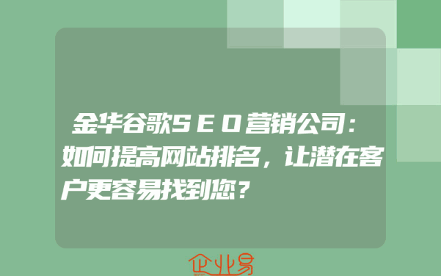 - 金华谷歌SEO营销公司:如何提高网站排名,让潜在客户更容易找到您?