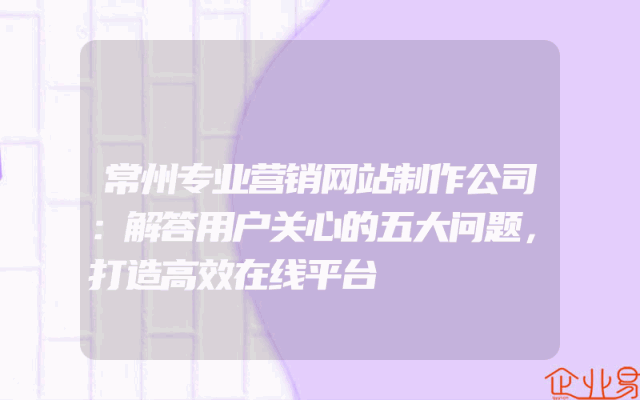 - 常州专业营销网站制作公司:解答用户关心的五大问题,打造高效在线平台