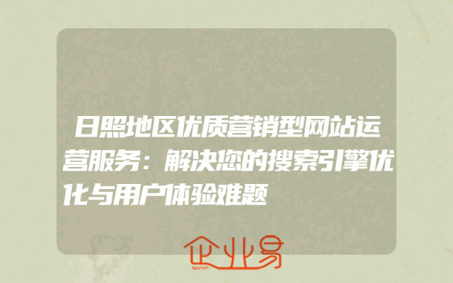- 日照地区优质营销型网站运营服务:解决您的搜索引擎优化与用户体验难题在当今的数字化时代,一个优质的营销型网站对于任何企业来说都是至关重要的。它不仅可以帮助企业扩大市场,提高品牌知名度,还可以提供便捷的用户服务,增加销售机会。然而,要建立一个