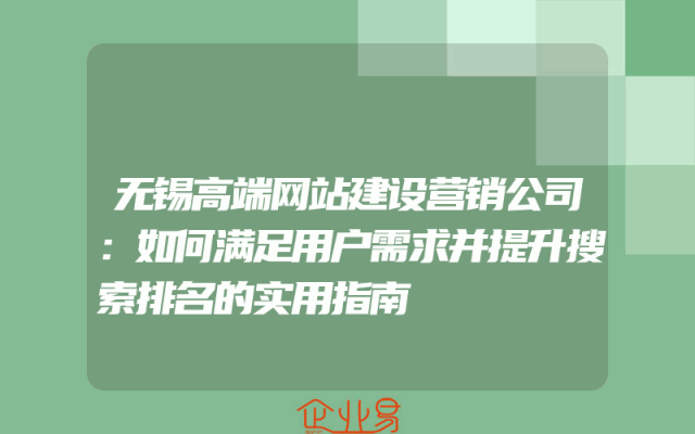 - 无锡高端网站建设营销公司:如何满足用户需求并提升搜索排名的实用指南