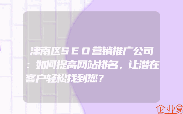 - 津南区SEO营销推广公司:如何提高网站排名,让潜在客户轻松找到您?