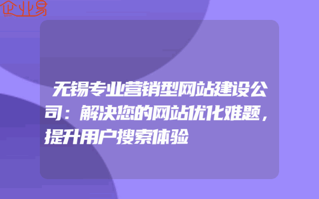 - 无锡专业营销型网站建设公司:解决您的网站优化难题,提升用户搜索体验