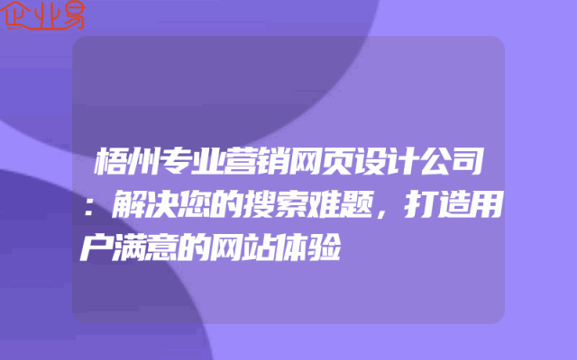 - 梧州专业营销网页设计公司:解决您的搜索难题,打造用户满意的网站体验