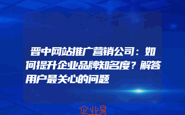 - 晋中网站推广营销公司:如何提升企业品牌知名度?解答用户最关心的问题