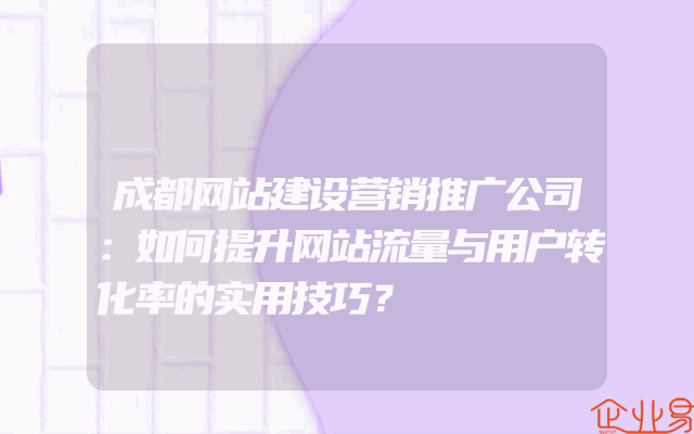 - 成都网站建设营销推广公司:如何提升网站流量与用户转化率的实用技巧?