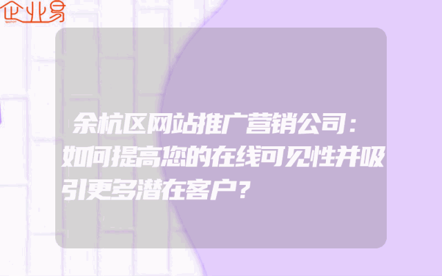 - 余杭区网站推广营销公司:如何提高您的在线可见性并吸引更多潜在客户?在当今的数字化时代,企业的在线存在感对于成功至关重要。然而,仅仅拥有一个网站并不足以确保您的企业在竞争激烈的市场中脱颖而出。为了提高您的在线可见性并吸引更多潜在客户,您需要考