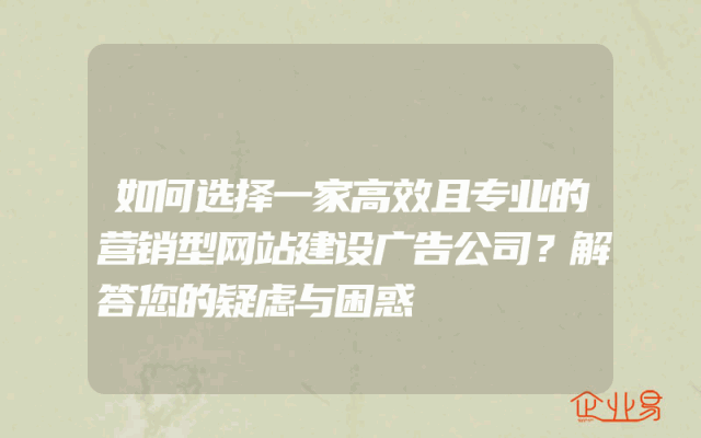 - 如何选择一家高效且专业的营销型网站建设广告公司?解答您的疑虑与困惑