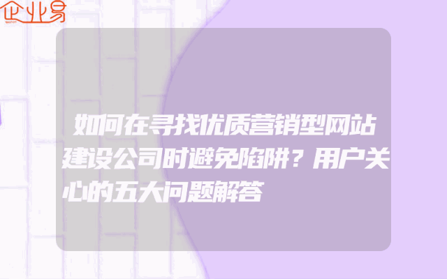 - 如何在寻找优质营销型网站建设公司时避免陷阱?用户关心的五大问题解答