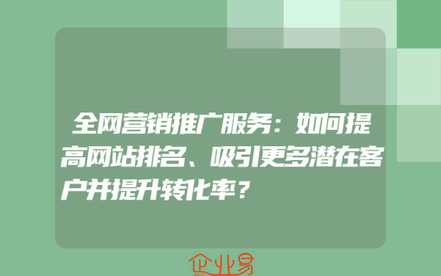 - 全网营销推广服务:如何提高网站排名、吸引更多潜在客户并提升转化率?