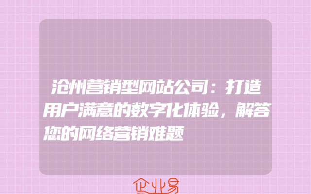 - 沧州营销型网站公司:打造用户满意的数字化体验,解答您的网络营销难题