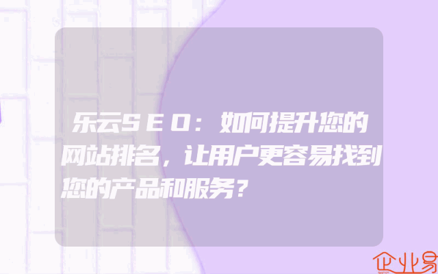 - 乐云SEO:如何提升您的网站排名,让用户更容易找到您的产品和服务?在当今的数字时代,网站已经成为企业展示自己产品和服务的重要平台。然而,随着互联网的普及,越来越多的企业网站涌现出来,这使得搜索引擎中的竞争变得愈发激烈。为了在众多竞争对手中脱