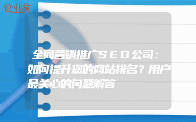 - 全网营销推广SEO公司:如何提升您的网站排名?用户最关心的问题解答