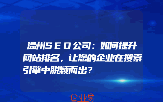 - 温州SEO公司:如何提升网站排名,让您的企业在搜索引擎中脱颖而出?