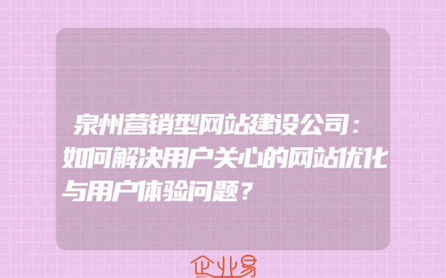 - 泉州营销型网站建设公司:如何解决用户关心的网站优化与用户体验问题?