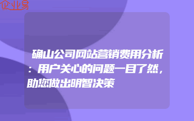 - 确山公司网站营销费用分析:用户关心的问题一目了然,助您做出明智决策