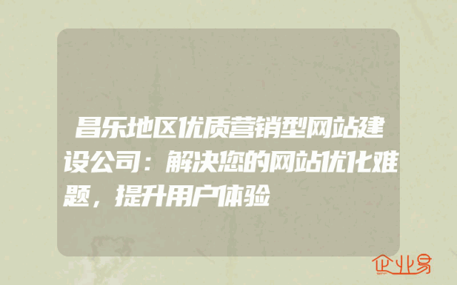 - 昌乐地区优质营销型网站建设公司:解决您的网站优化难题,提升用户体验