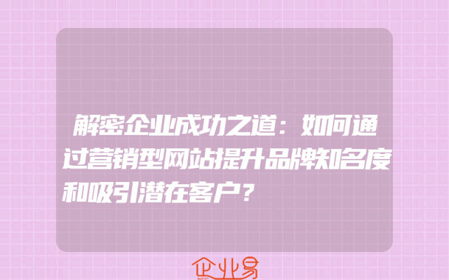 - 解密企业成功之道:如何通过营销型网站提升品牌知名度和吸引潜在客户?