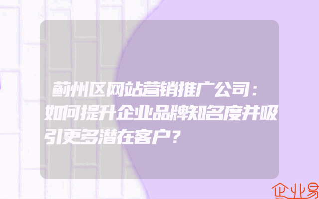 - 蓟州区网站营销推广公司:如何提升企业品牌知名度并吸引更多潜在客户?