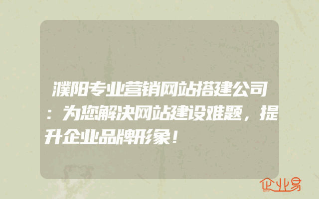 - 濮阳专业营销网站搭建公司:为您解决网站建设难题,提升企业品牌形象!