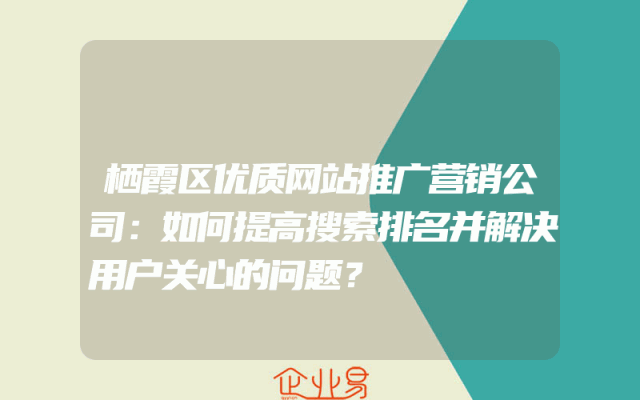 - 栖霞区优质网站推广营销公司:如何提高搜索排名并解决用户关心的问题?