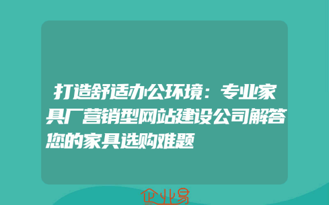 - 打造舒适办公环境:专业家具厂营销型网站建设公司解答您的家具选购难题