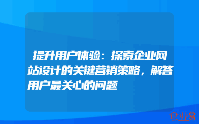 - 提升用户体验:探索企业网站设计的关键营销策略,解答用户最关心的问题