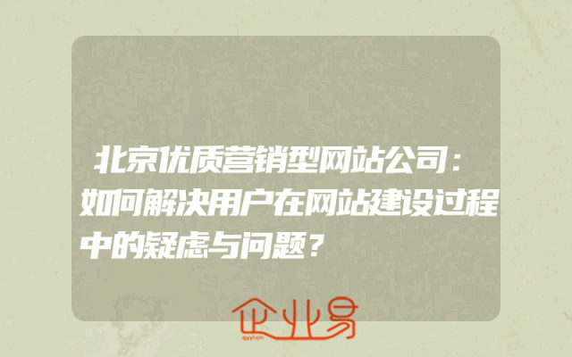 - 北京优质营销型网站公司:如何解决用户在网站建设过程中的疑虑与问题?