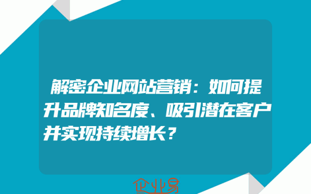 - 解密企业网站营销:如何提升品牌知名度、吸引潜在客户并实现持续增长?