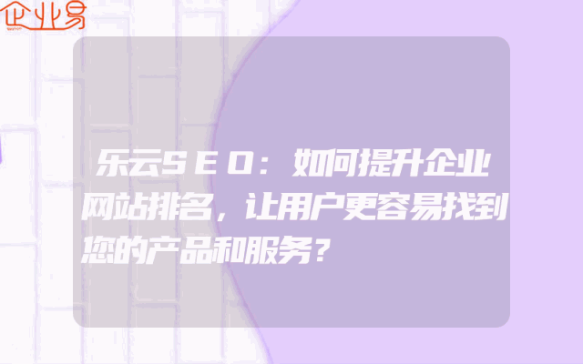 - 乐云SEO:如何提升企业网站排名,让用户更容易找到您的产品和服务?