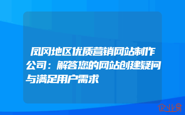 - 凤冈地区优质营销网站制作公司:解答您的网站创建疑问与满足用户需求