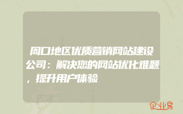 - 周口地区优质营销网站建设公司:解决您的网站优化难题,提升用户体验