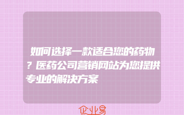 - 如何选择一款适合您的药物?医药公司营销网站为您提供专业的解决方案